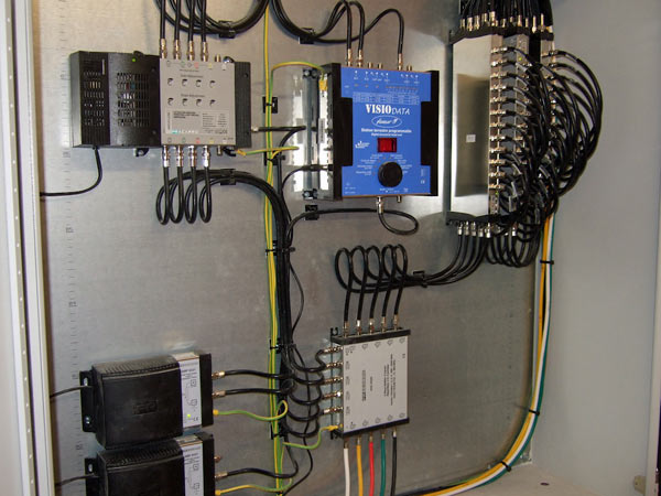 Impianti di notevoli dimensioni ad esempio al Royal Hotel Carton le sale conferenze per un totale di 250 prese digitali terrestri con diverse sotto centrali di amplificazione.